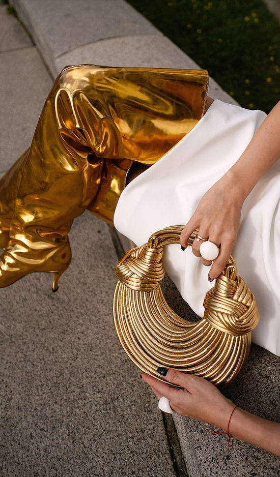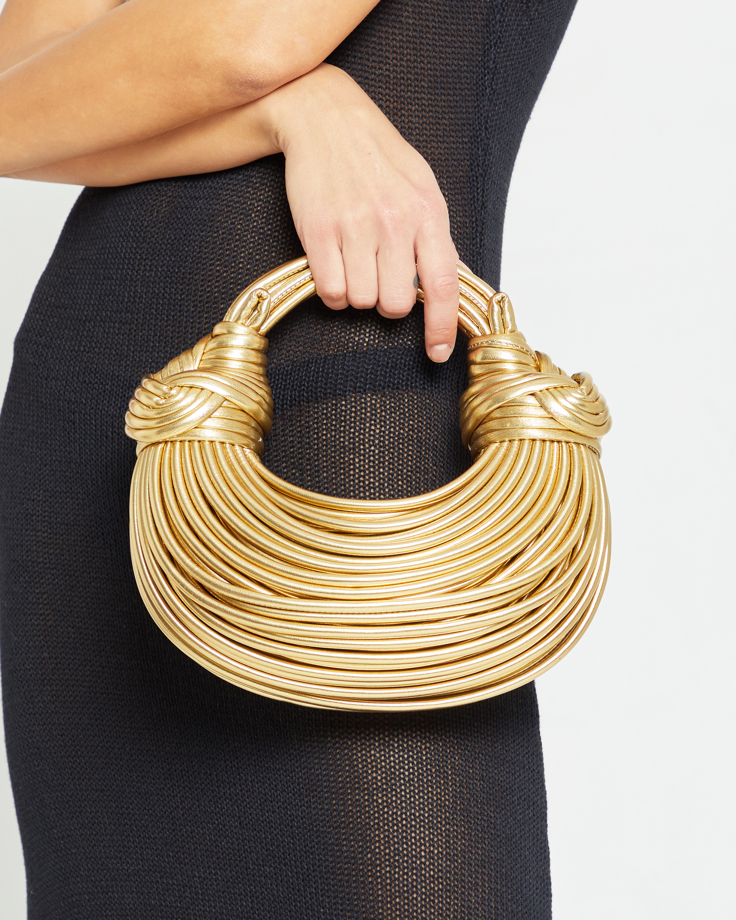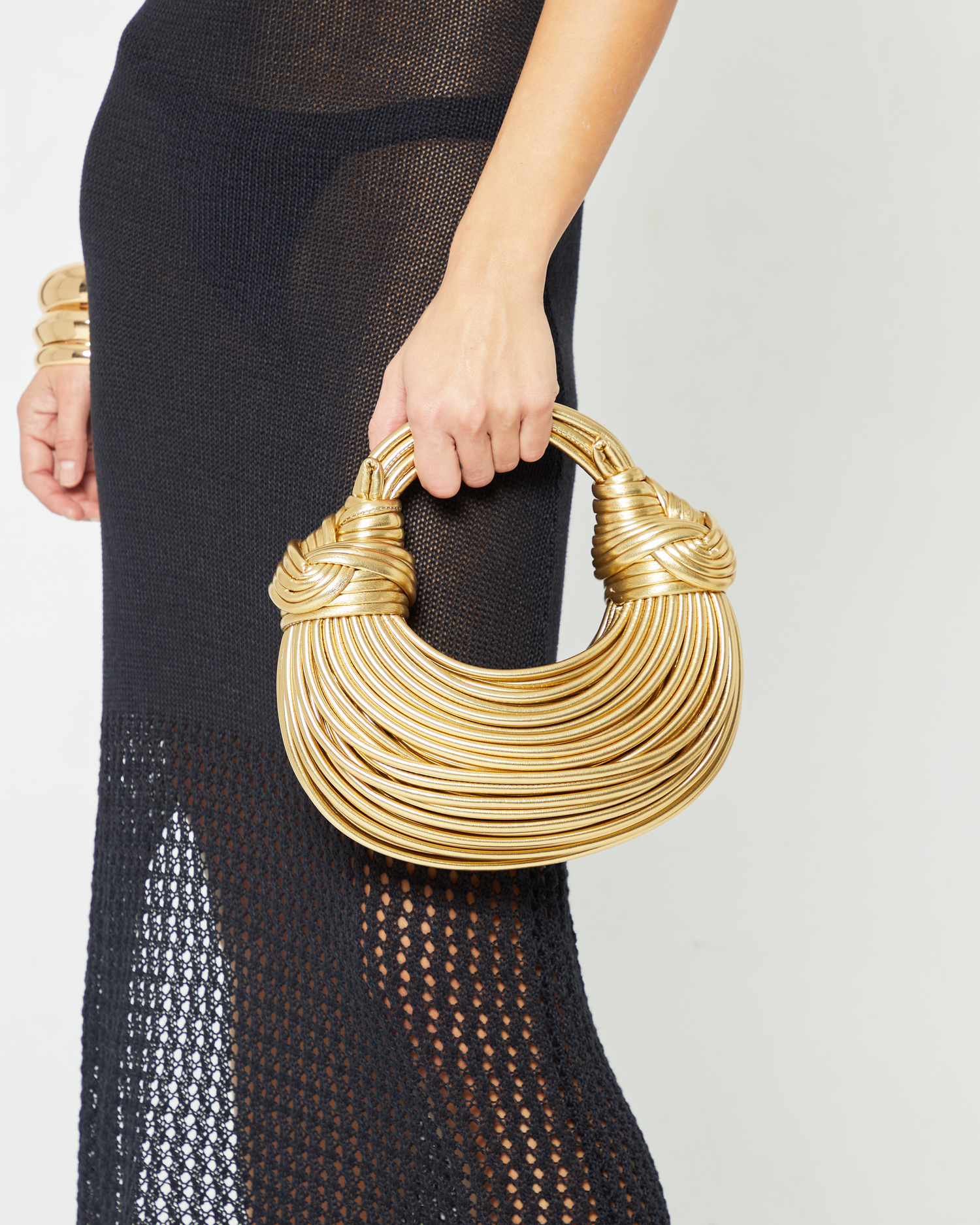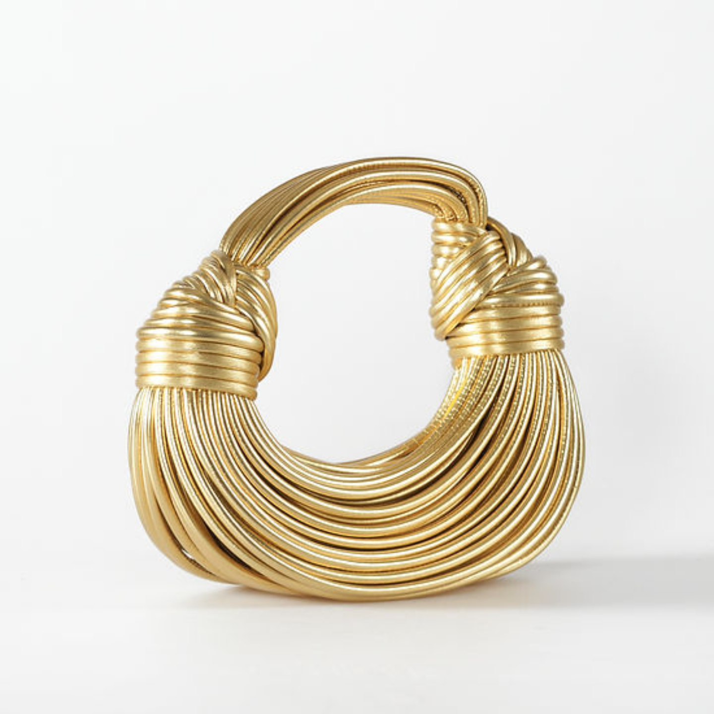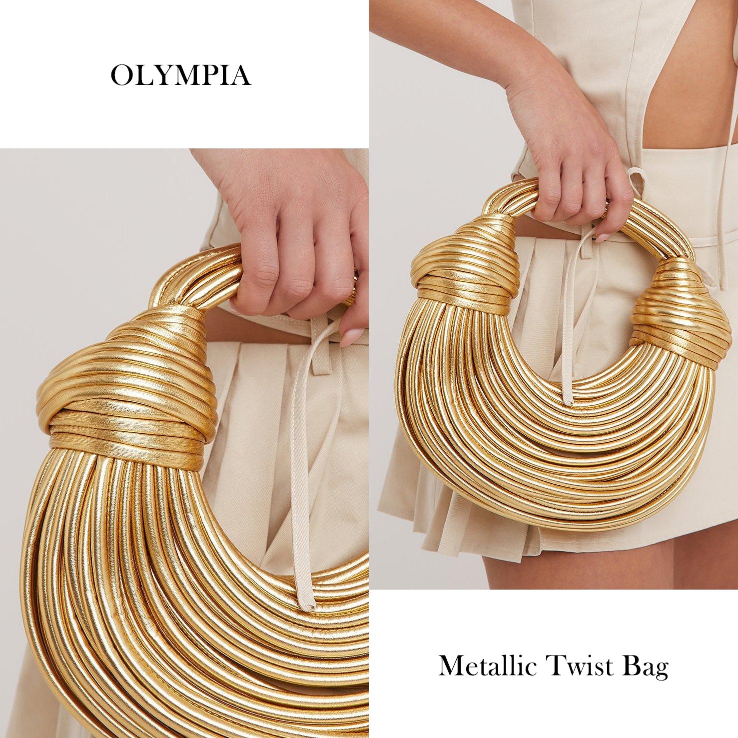 Introducing our Olympia-inspired Handbag, a tribute to the ancient glory of Greece's revered site. Famed as the birthplace of the Olympic Games, Olympia embodies strength and heritage. Similarly, this handbag's design exudes resilience and timeless elegance, with its golden hue symbolizing victory and prestige.Crafted in luxurious gold with intricate rope detailing, this handbag echoes the grandeur of Olympia's iconic columns.