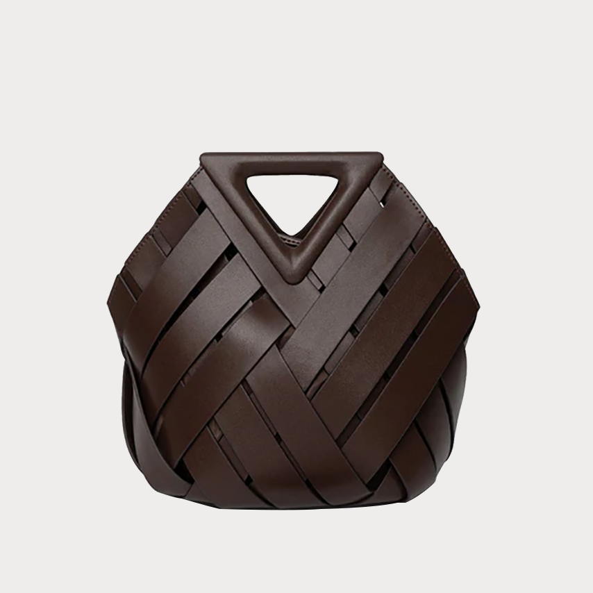 Make a lasting impression with an accessory that's as unique as you are. The inverted triangle handle adds a touch of modernity, making this woven bag a symbol of contemporary elegance. Every thread tells a story of exceptional artistry, making it a perfect blend of fashion and function. Now available in dark brown, black, brown, and green.