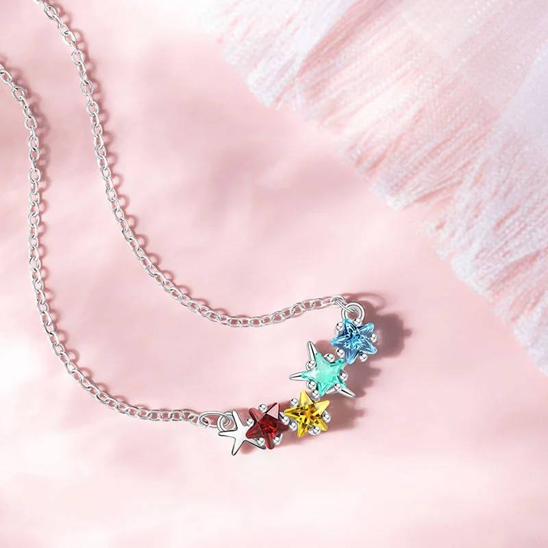 Inspired by the carefree spirit of summer and the sparkling allure of island life, the Summer Isle Rainbow Stars Necklace dazzles with colorful stars that radiate warmth and joy. This playful piece embodies the carefree elegance of summer, offering a touch of whimsical charm to any look. Perfect for brightening up your ensemble, this necklace will transport you to a world of endless sunshine and starlit skies.