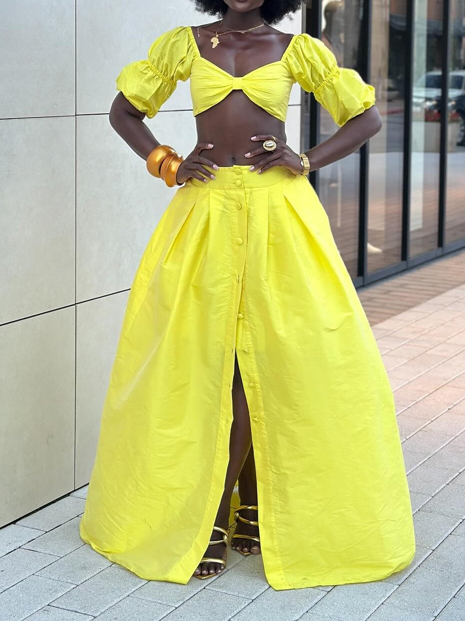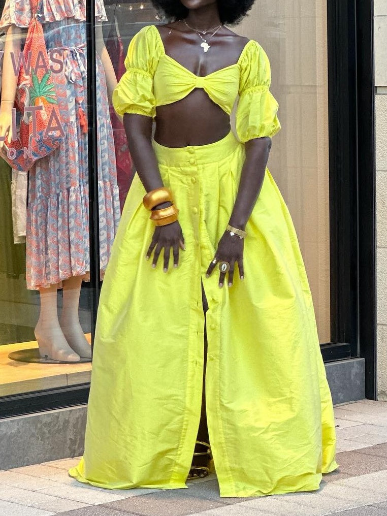 Yellow Bra Crop Two Pieces Set